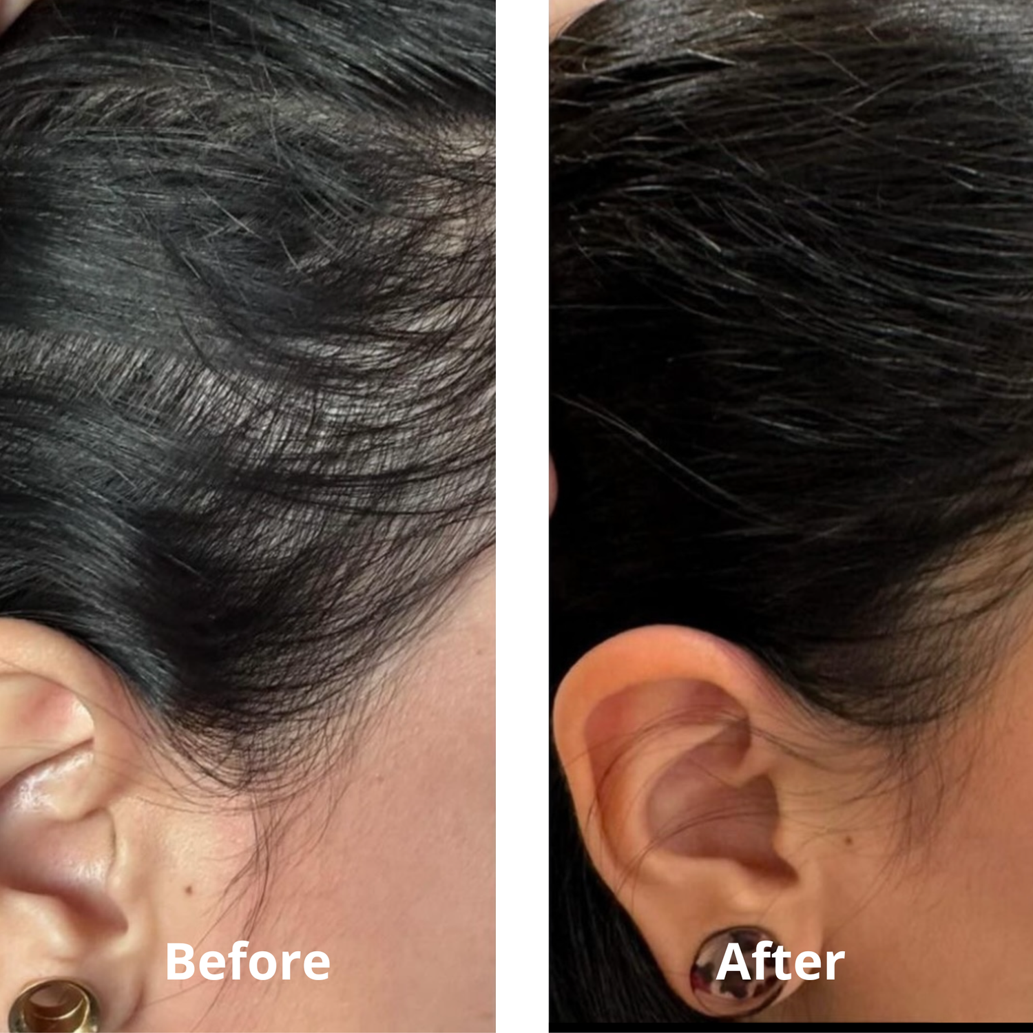 Op deze foto's zie je het resultaat dat is behaald door consistent gebruik van het Vitacrown Haargroeiserum in combinatie met de Dermastamp.